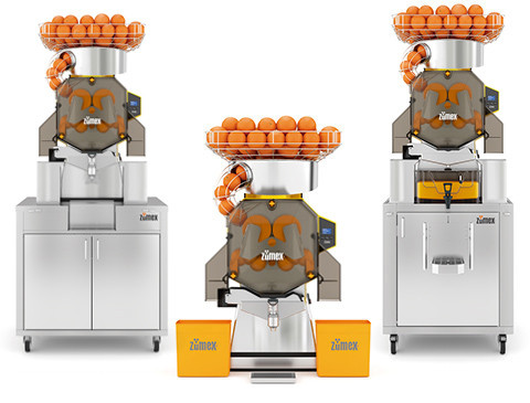 Wird mit einem automatischen System PulpOut und Schnell-Reinigungskit 1Step geliefert sowie einem neuem Podium, perfekt geeignet für Betriebe mit hohem Saftabsatz.