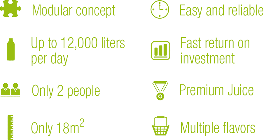 Juice Solutions is a modular system for processing citrus fruit and pomegranates that can be adapted to every need. The ideal solution for medium-sized production of orange, tangerine, grapefruit, lemon and pomegranate juices.